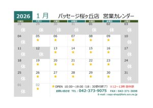 1月のカレンダー更新しました